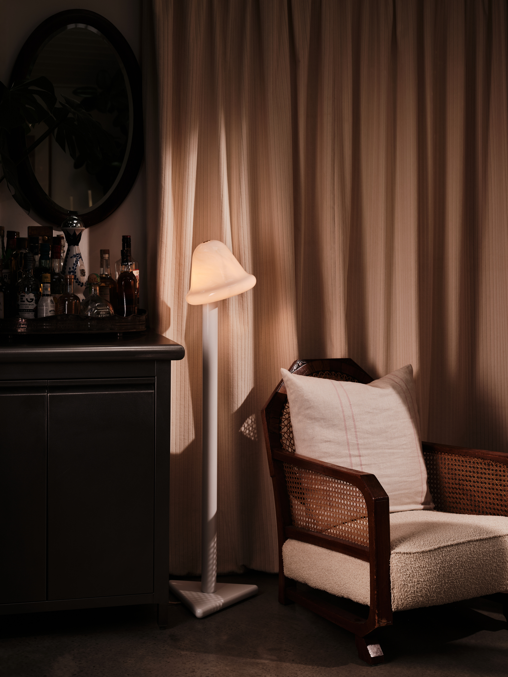 Each shade is mouth-blown and comes in an inspired palette of Strawberry, Chocolate, and Vanilla. Who doesn't want a deliciously stylish overhead lighting alternative to brighten up their reading nook or bedside? The Neo design comes as a floor, wall, ceiling, and pendant light as well.