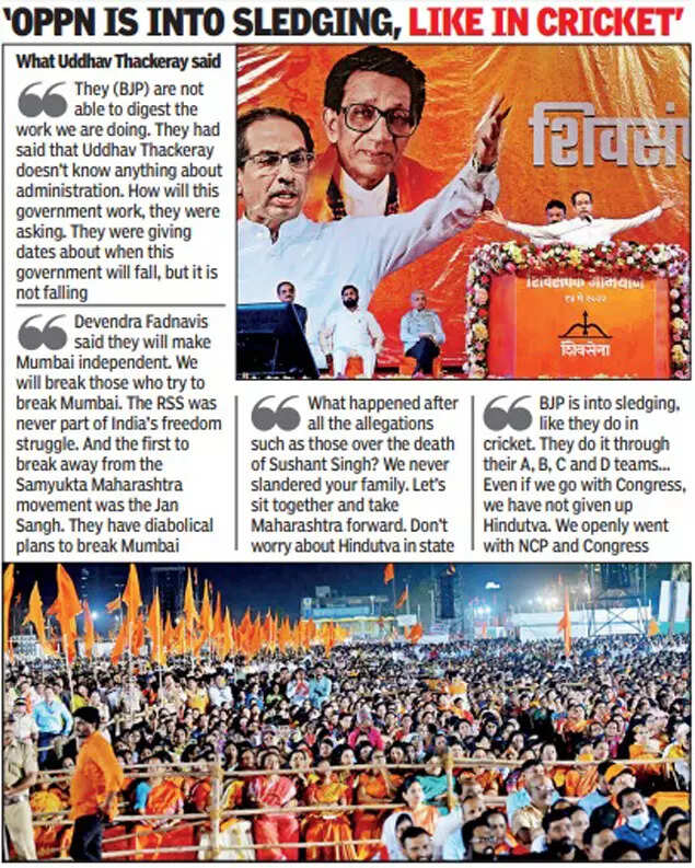 MUMBAI: CM Uddhav Thackeray on Saturday warned the BJP-led Centre if they didn’t stop “misuse” of Central agencies like CBI and ED and lodging “bogus cases” against MVA leaders, his government would retaliate “mercilessly” in the same manner against BJP and “they would not have any place to flee.” At a Sena rally in BKC, he also slammed the Centre for failing to provide security to Kashmiri Pandits and instead providing security to “small-time BJP leaders in Maharashtra.”