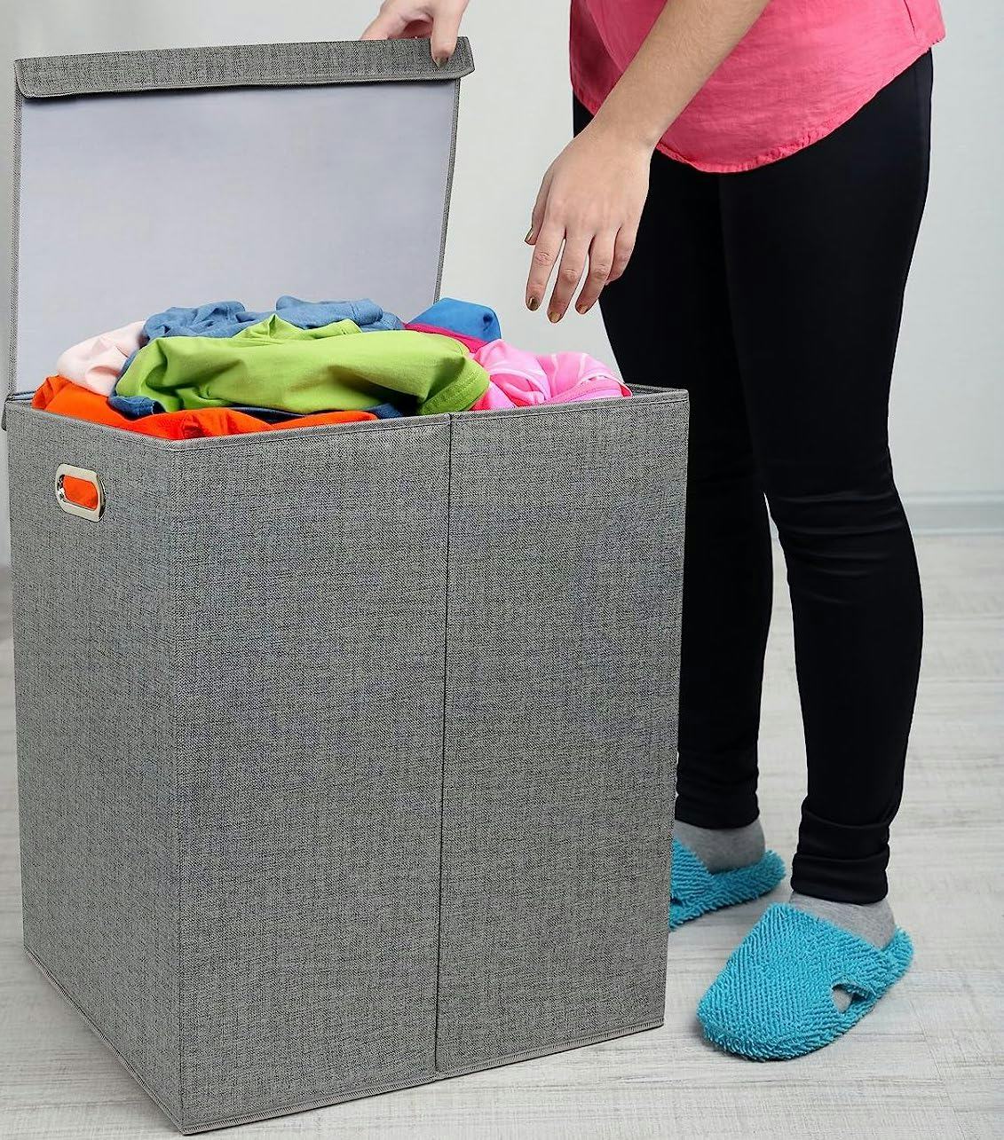This Laundry Hamper With 2 Separate Compartments For Sorting