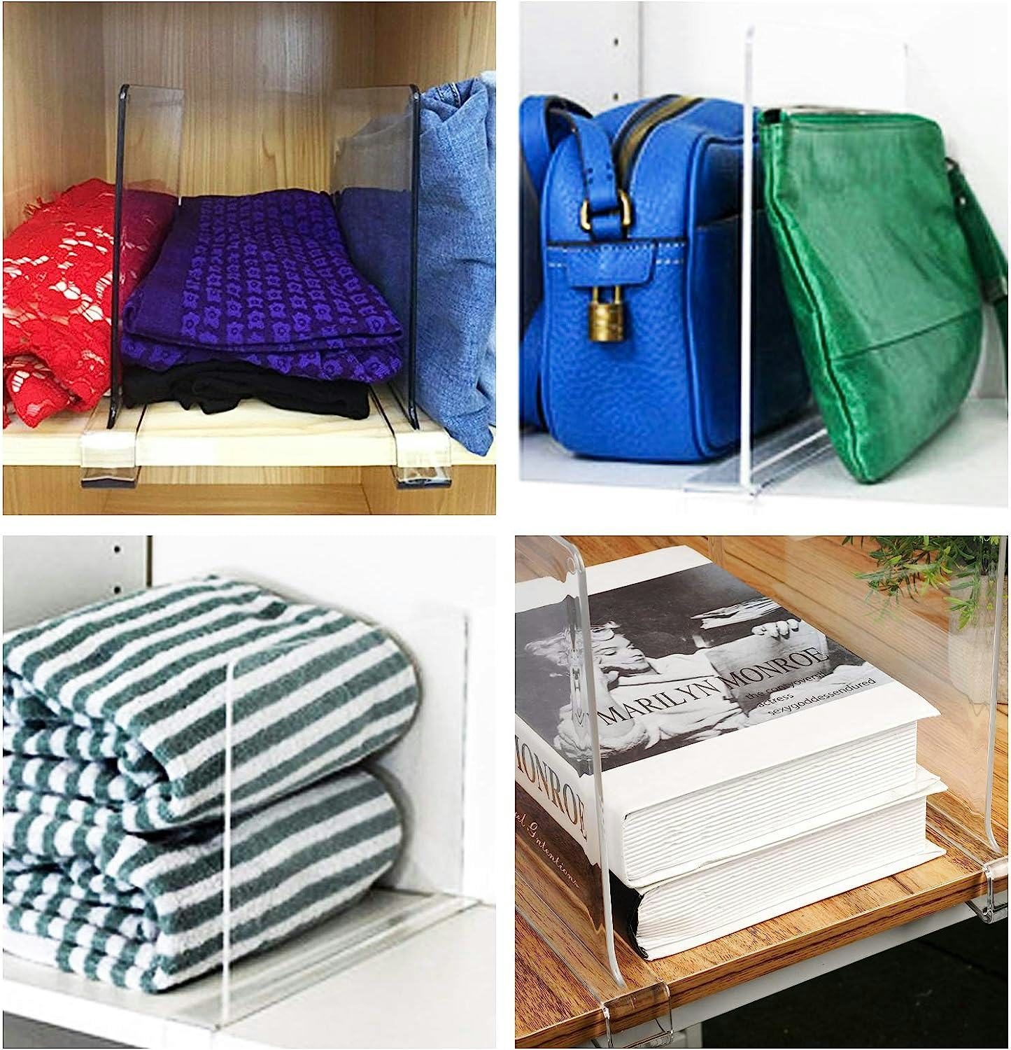 Compartmentalizing your items is an easy way to bring some tidiness back to your closet. These shelf dividers allow you to keep your clothes, towels, bags, and other belongings in separate stacks. Shift them around as you please — each one stays upright, thanks to a slim base. And, since they’re transparent, you’ll barely even notice they’re there.