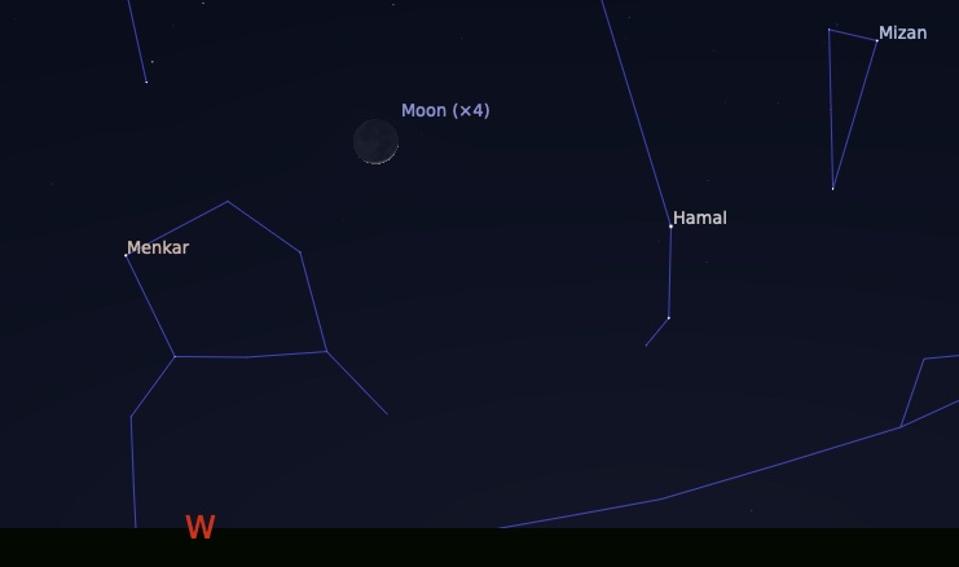 Here’s what you’ll see an hour after sunset on Sunday if you face west: