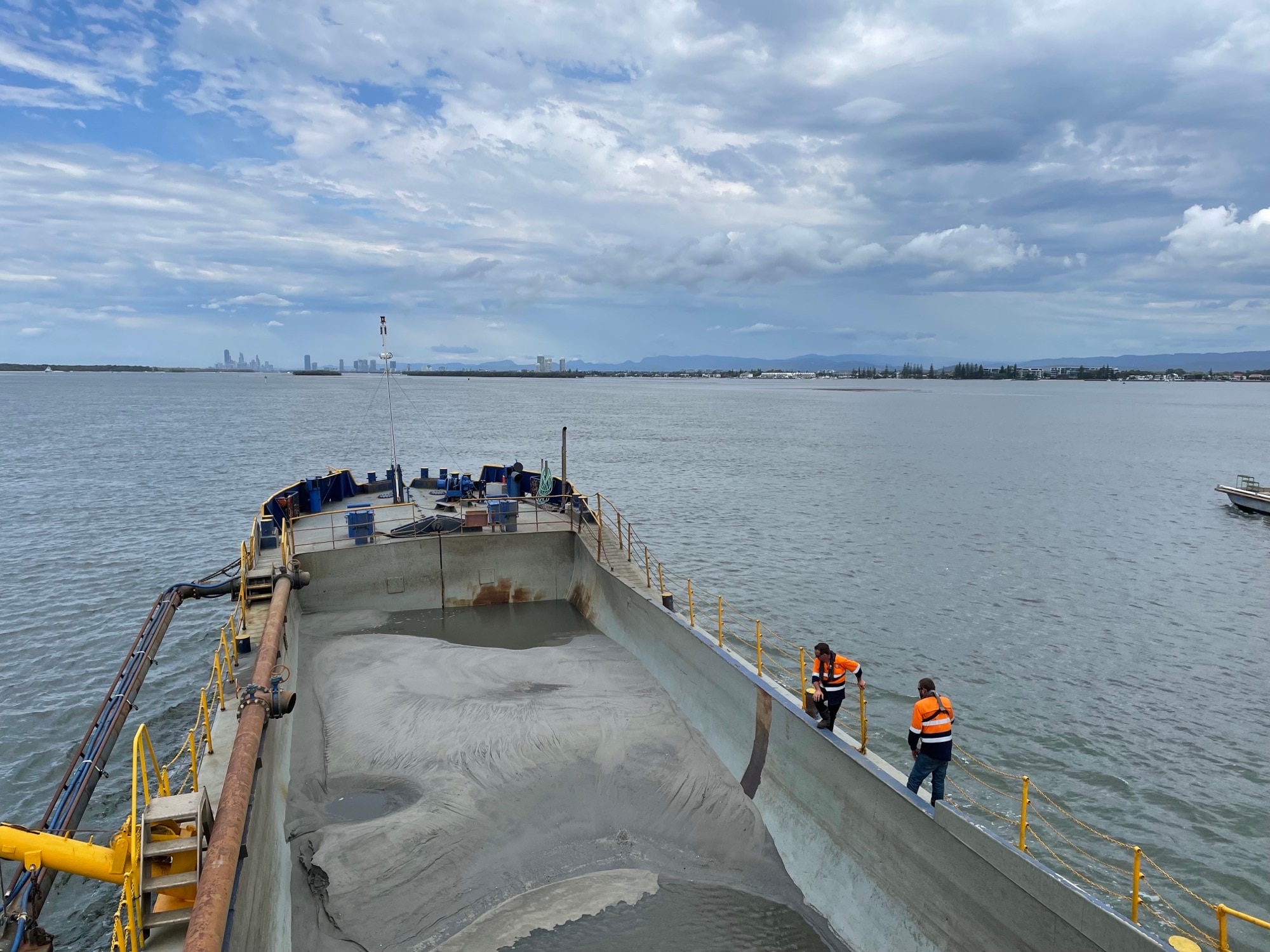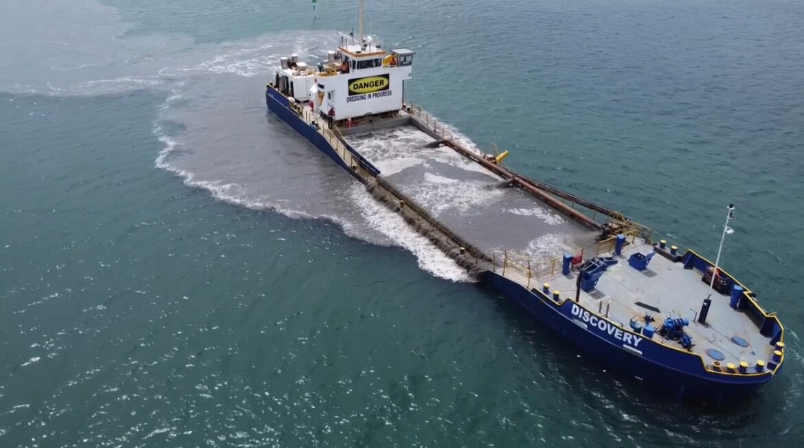 Mr McKay says his barge's hopper carries up to 950 tonnes of sand at a time that is then transported and released into the ocean off nearby surf beaches, helping to combat erosion and revitalise the exposed coastline.