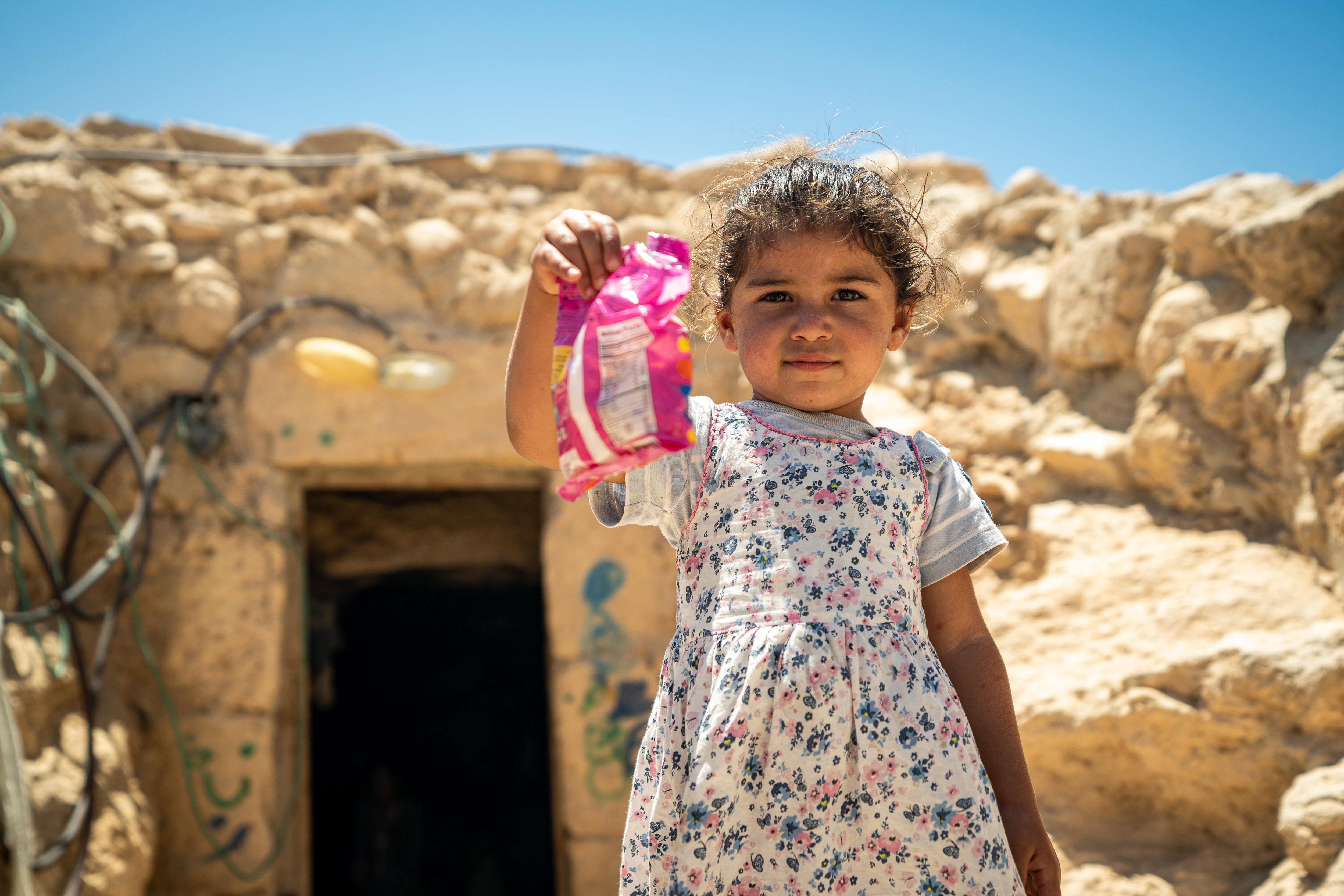The older children are forced to sleep outside on a makeshift platform, built by their dad to keep them protected from snakes and other threats. One of Mr Husheyah's daughters was recently stung by a scorpion.