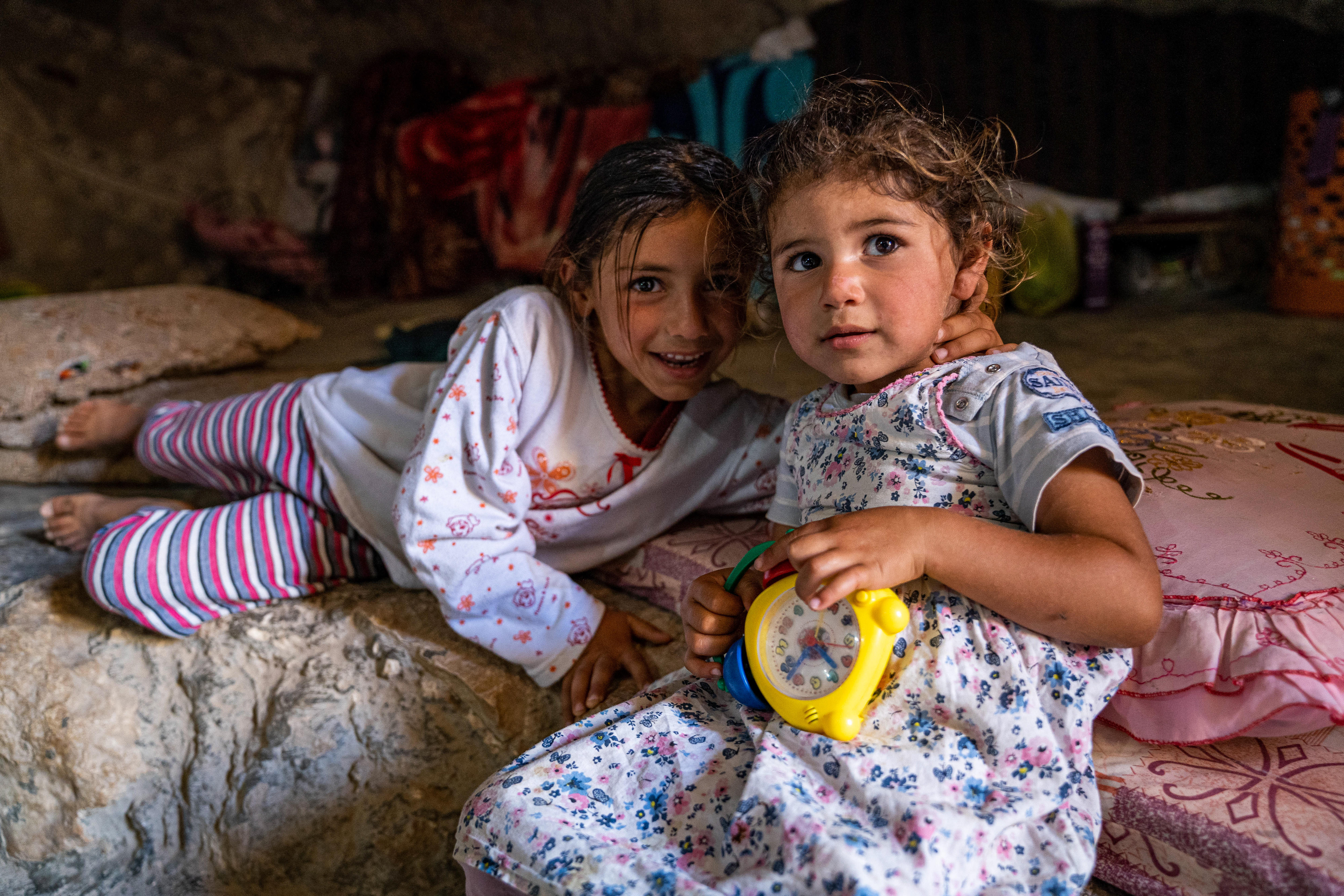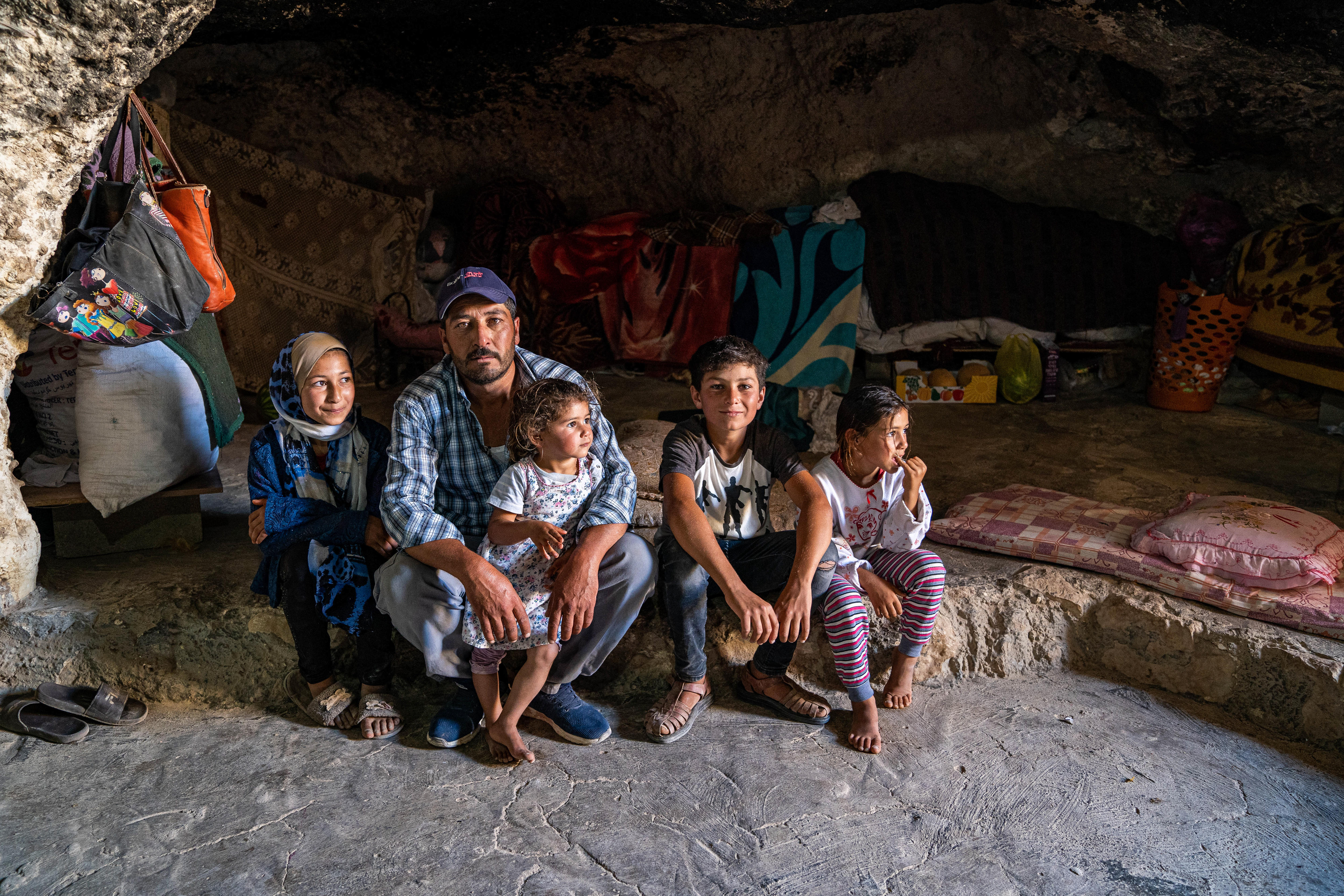 At night, some of his children sleep inside the cave on pieces of foam, pulled out onto the rocky floor.
