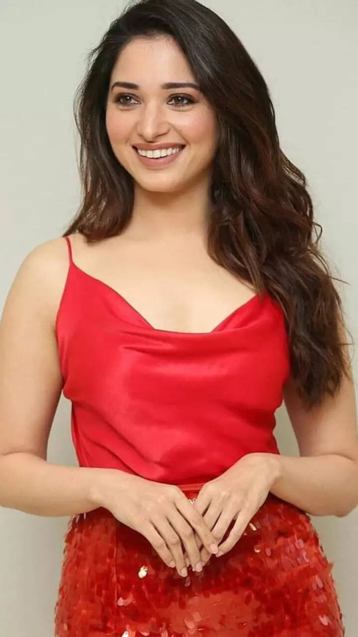 Turning into a glam doll, Tamannaah slipped into a red satin dress with a plunging neckline for her photoshoot.