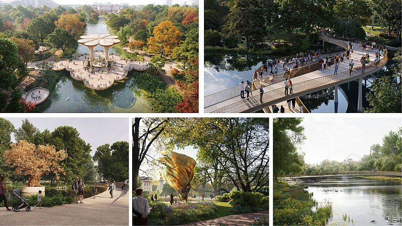 A thread of pathways and landscapes "gently woven through the natural fabric" of the park with a pair of "elegant bridges" have been proposed by WilkinsonEyre with artists Lisa Vandy and Fiona Clarke.