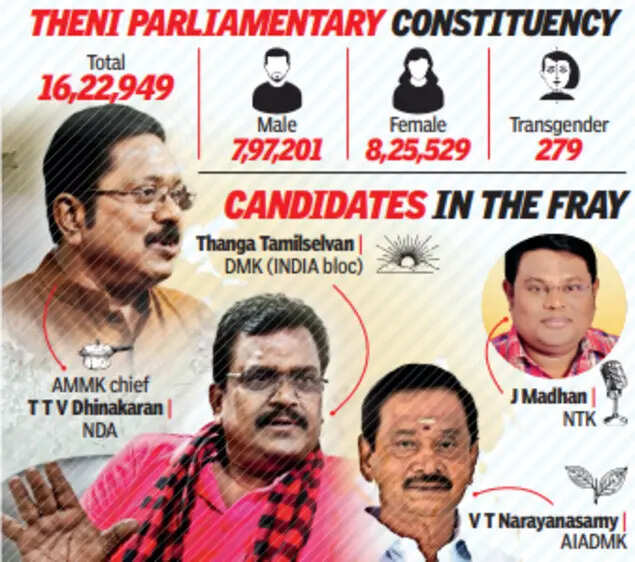 The region holds historical significance for the AIADMK, with Andipatti being a coveted assembly segment in Theni that was previously won by party stalwarts M G Ramachandran and J Jayalalithaa. MGR won the seat while undergoing treatment in the US in 1984. Theni Lok Sabha seat came into existence after a delimitation exercise in 2009.