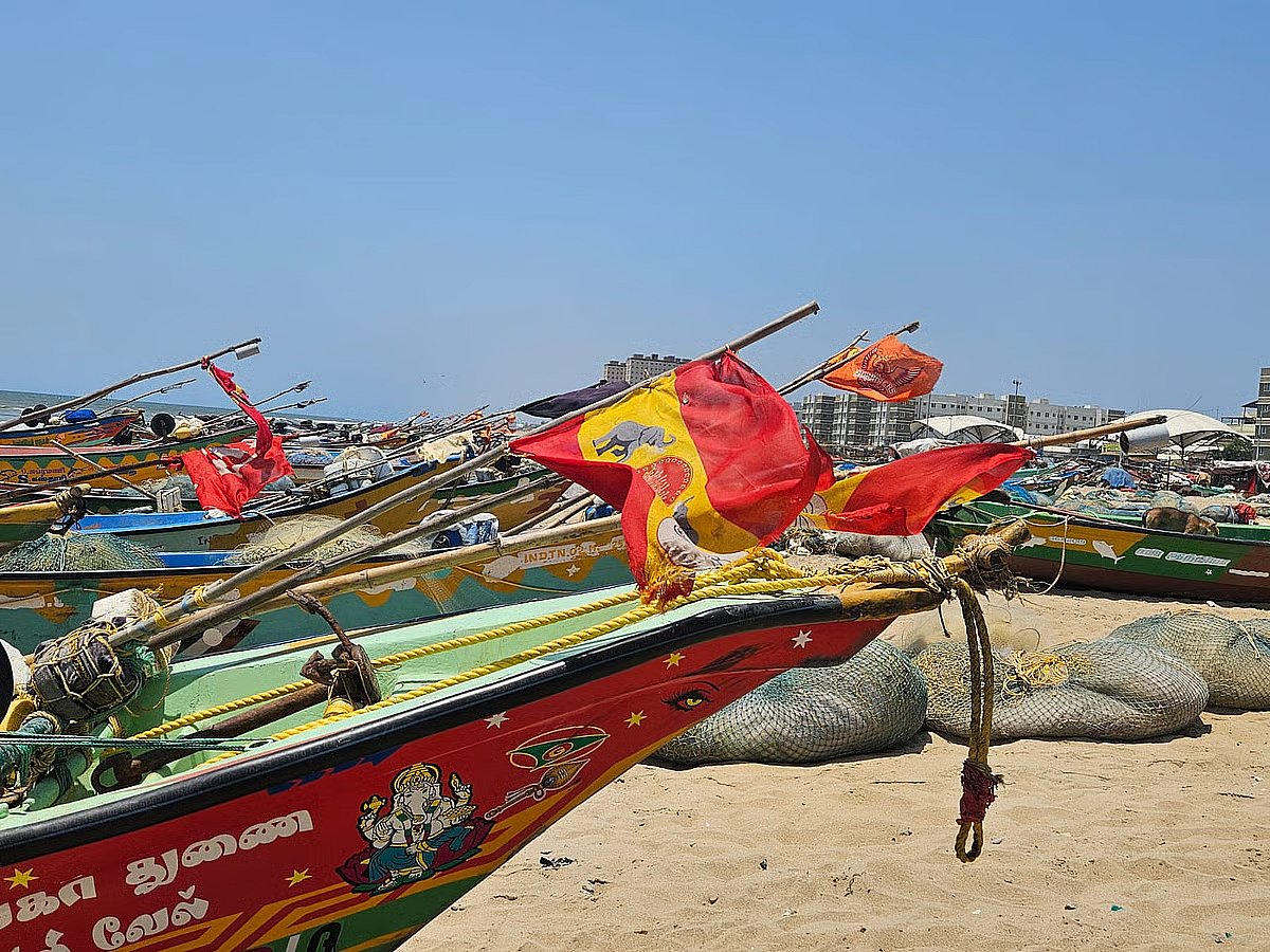 Unlike in Besant Nagar fishing village, in Nochikuppam fishing village, among the hundreds of boats on the shore, only one or two carried TVK flags. It also appeared that there are strong reservations about Vijay.