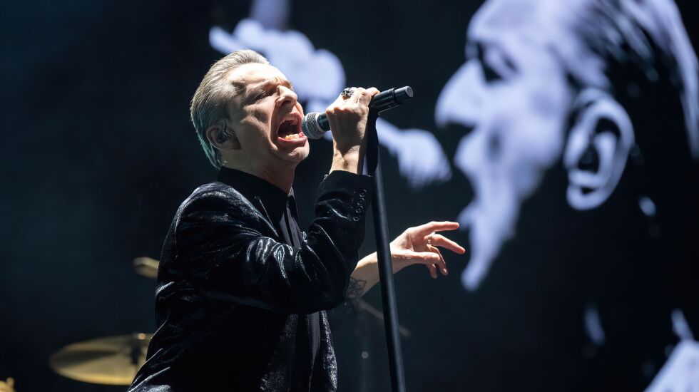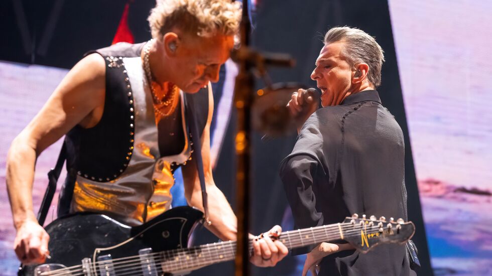 The rest of the song platter was a well-constructed, fan dream set that pulled from every era, and like any good Depeche Mode album, moved the crowd through a range of emotions, from swiveling dance numbers to sensual come hithers to deep revelations. Inside the set was their first big hit, the kitschy “Just Can’t Get Enough” as well as the “Violator” gem “Personal Jesus,” and a salutary version of “World In My Eyes” paying homage to Fletcher as his image was superimposed on the video screens. “Never Let Me Down Again” (recently featured on HBO’s “The Last of Us”) was the penultimate highlight, Gahan bidding the multi-generational crowd to engage in the trademark arm wave that has become a cornerstone of the song’s live performances.