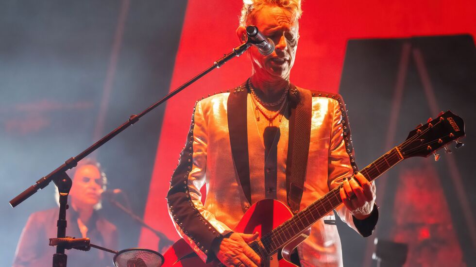 The atmosphere of the show — which touched down at United Center Wednesday night and marks the band’s first tour in five years — could best be summed up as one incredible, complicated eulogy: to fallen comrade Andrew “Fletch” Fletcher, one of the band’s founding members who died suddenly last year. And maybe also to Sire Records co-founder Seymour Stein, who passed away earlier this month, and who first introduced Depeche Mode to the U.S. But in many ways the concert also commemorated the ending of one chapter and the rest and peace found in discovering a new beginning.