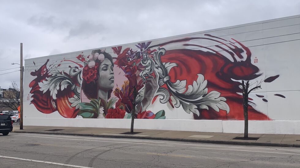 The little hoofed creature playing an instrument in a sprawling new mural on the Near West Side is a faun — a mythological part-man and part-goat.
