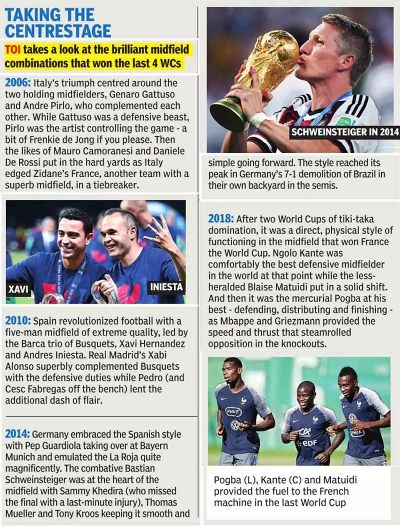 The ongoing World Cup has been termed as the most even festival of football in recent memory. The argument given is that there is not one stand-out team that seems to be calling the shots. While there are numerous reasons being discussed – mid-season World Cup being one of them – the lack of 'a complete midfield' in any of the teams is probably a bigger factor.