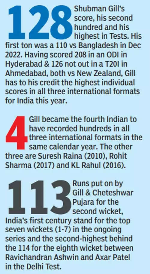 AHMEDABAD: After Shubman Gill stepped out of his crease and hit off-spinner Nathan Lyon for a six over mid-off in the last over of the day on Friday, captain Rohit Sharma walked up to him and gave him a pat on his back. In pre-T20 days, the young Gill would have probably got his ears boxed. Not in this age.