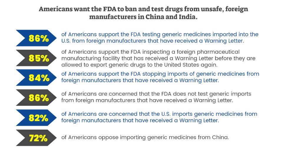 Companies that are on the receiving end of Warning Letters are still allowed to sell pharmaceuticals into the U.S. This, too, has prompted local generic pharma companies to push back against this, leading to the creation of the American for Safe Drugs group. Their Morning Consult poll showed that over 80% of those surveyed either wanted those drugs banned or wanted them inspected upon arrival in a U.S. port before being given to patients.