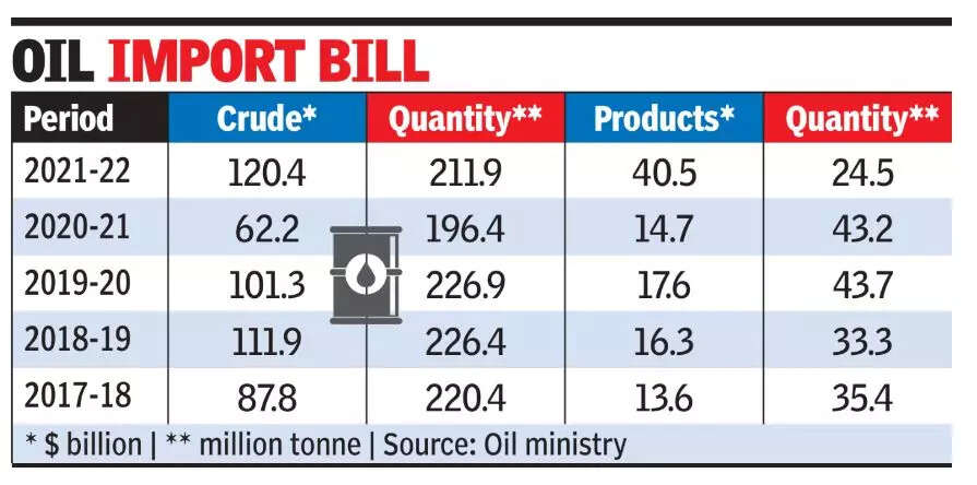 In 2021-22, the oil companies spent $144 billion on importing about 212 million tonne (mt) of crude and 40 mt of products. High oil prices weaken the rupee by draining the forex kitty as more Indian currency is needed to buy each dollar. As the rupee loses strength, raw material imports become costlier.