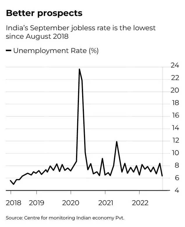 Good monsoon rains and the withdrawal of pandemic restrictions accelerated economic activity in agriculture, the services sector, and in small- and medium-enterprises. That was accompanied by a drop in the jobless rate to the lowest in more than four years in September.