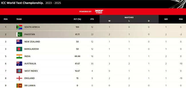 After the embarasing defeat, India lost the top spot in the updated WTC points table and slipped to fifth position in the standings.