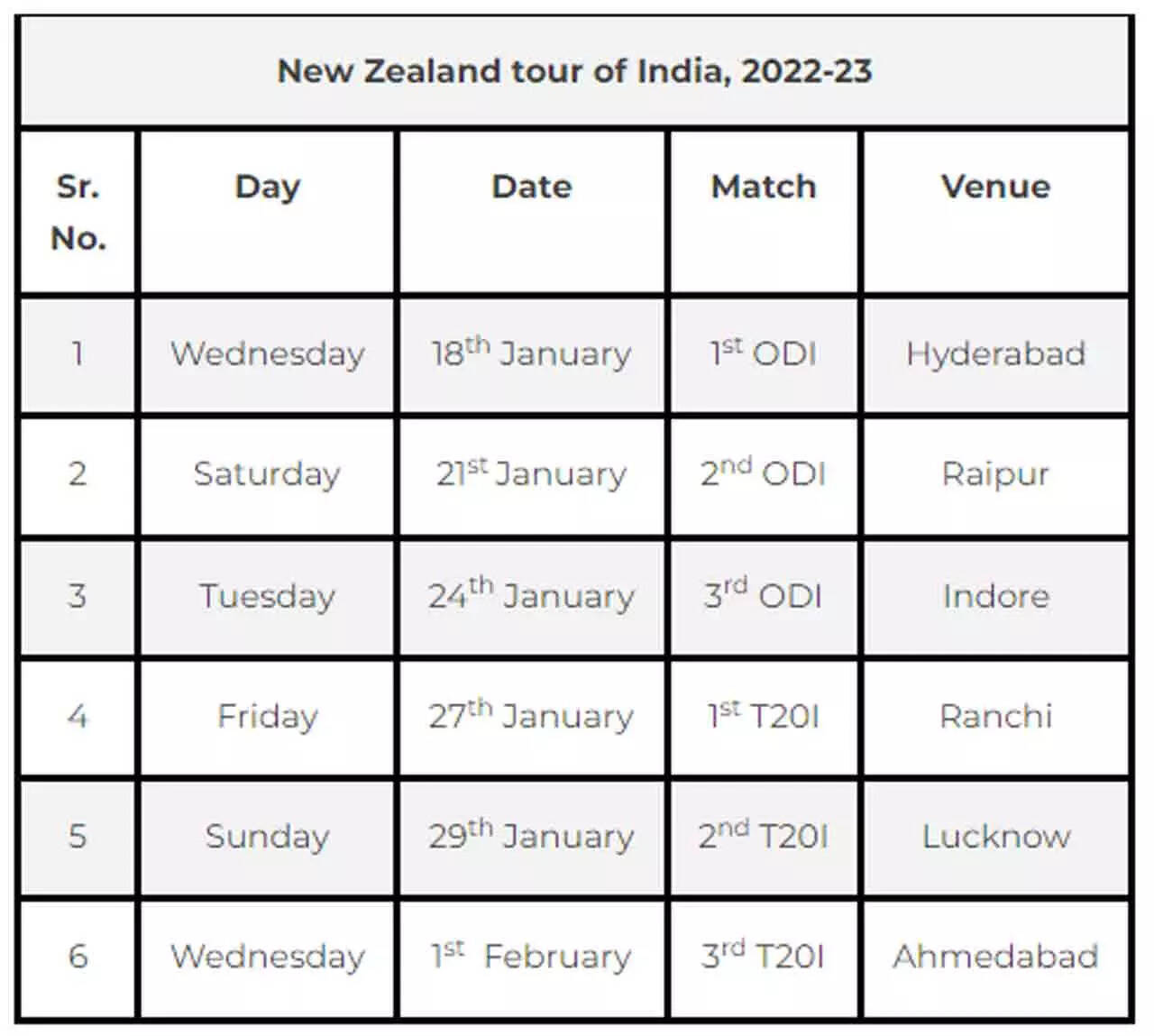 India will also play a three-match T20I series against New Zealand on January 27, 29 and February 1 at Ranchi, Lucknow, and Ahmedabad respectively.