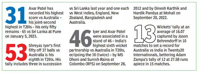 With 17 runs needed from 12 balls, Mukesh Kumar (3/32) conceded only seven runs in the 19th over. Arshdeep, who had given away 37 runs in his first three overs, regained his accuracy and rhythm, dismissing Matthew Wade and ultimately securing the game in India's favour.