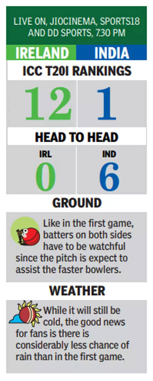 Bolstered by Jasprit Bumrah's remarkable comeback, the Indian team anticipates better weather conditions, aiming to provide their young batters a chance to showcase their skills in the second T20 international against Ireland, scheduled for Sunday.