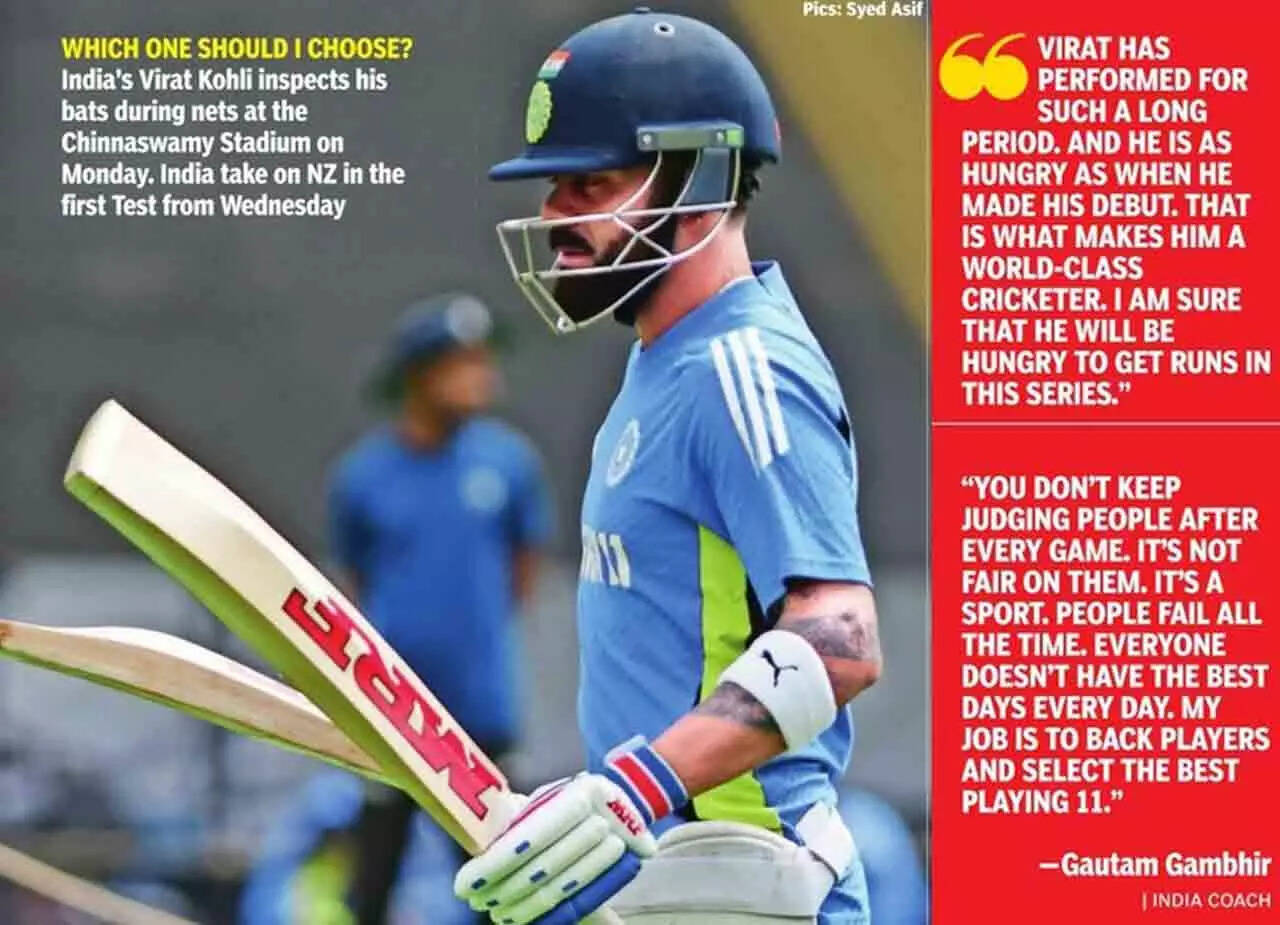 Like always, Kohli may have chosen to ignore the clatter, but given his penchant for detail and work ethic, he perhaps has been hard on himself. It showed on Monday at the M Chinnaswamy stadium when the former India skipper spent considerable time facing spinners in the nets. There were the odd deliveries where he second-guessed himself, but there were plenty of assured cuts and hoists over the infield, all of them executed with impeccable footwork.