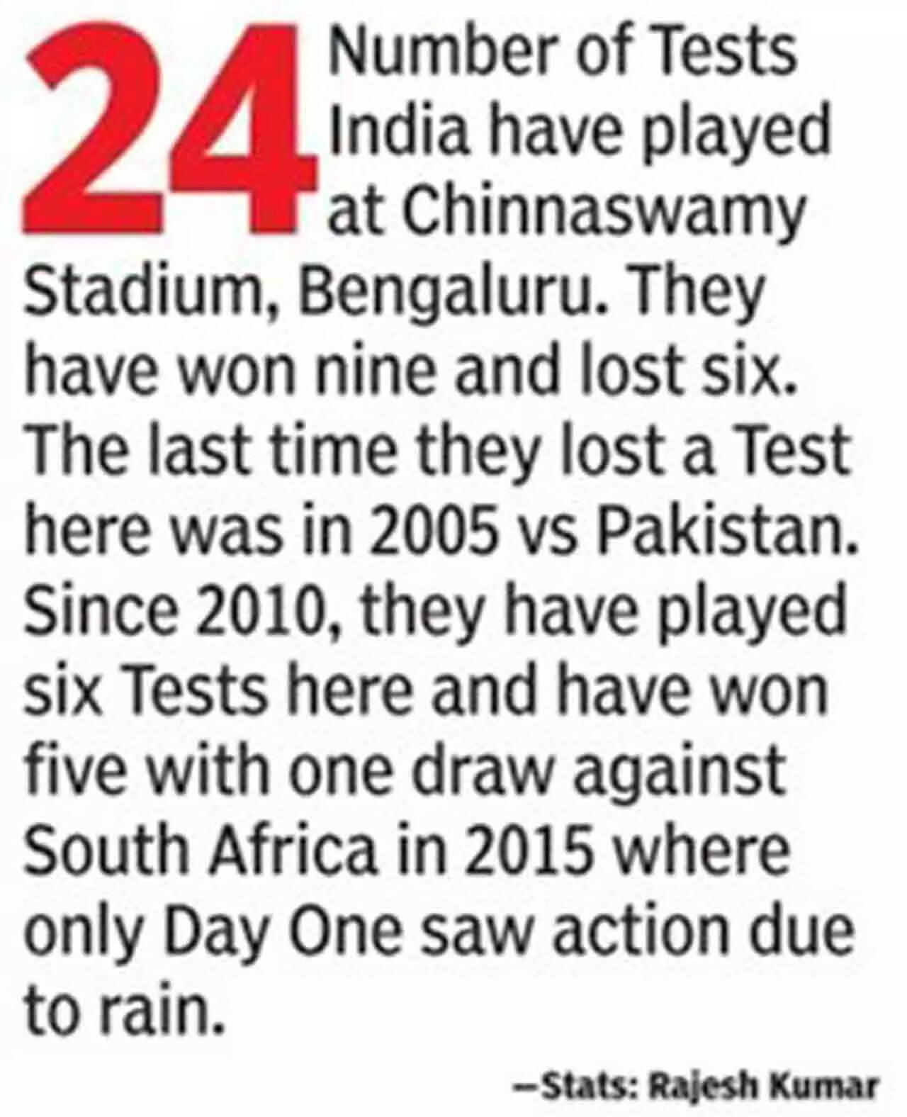While making his mark in red-ball cricket as a youngster, Kohli found comfort at this venue. Back in 2012 against New Zealand, he clobbered a century (103) and an unconquered 51, runs that eventually proved crucial in India's five-wicket win.