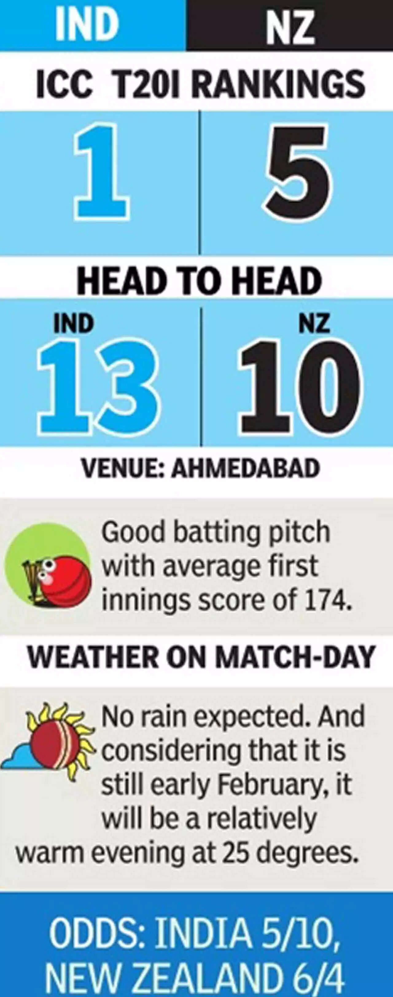 AHMEDABAD: The last time India lost a T20I series at home was in March 2019, when all-rounder Glenn Maxwell inspired Australia to a 2-0 series triumph. Since then, India have competed in 20 bilateral T20I series, both away and home, winning 17 of them, drawing two and losing one to Sri Lanka in 2021, when a majority of India's playing squad members were infected with Covid.