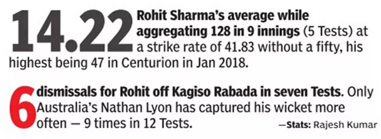 <p>In South Africa, Rohit Sharma has a dismal average of 14.22 while aggregating 128 in 9 innings (5 Tests) at a strike rate of 41.83 without a fifty. </p>AFP3/10:Not a happy hunting ground