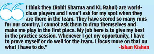 “I think they (Rohit and Rahul) are world-class players and I won’t ask for my spot when they are there in the team. They have scored so many runs for our country, I cannot ask them to drop themselves and make me play in the first place,” Ishan said at the post-match press conference on Thursday night.