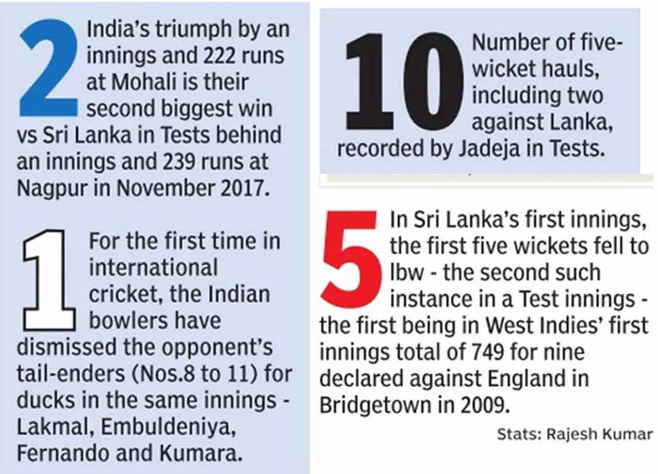 When he cleaned up Lahiru Kumara in Lanka's first innings to complete a five-wicket haul on the third morning, he became the third Indian to score 150 runs and take five wickets in a Test match after Vinoo Mankad and Polly Umrigar. That he is the first Indian to do so in nearly 60 years is further evidence of his calibre as an outstanding allrounder. Jadeja ensured there was no respite for a Sri Lankan team which can at best be described as ordinary.