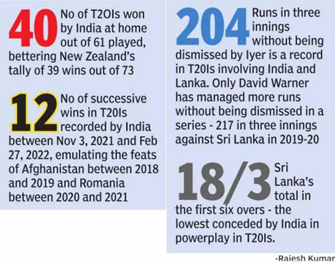 The script remained the same as in the previous game at Dharamsala. Shreyas Iyer came up with a third straight half-century in the series to help India brush aside Sri Lanka by six wickets and register a hat-trick of clean sweeps in white-ball cricket. With the win, India extended their unbeaten streak in T20Is to 12 matches.