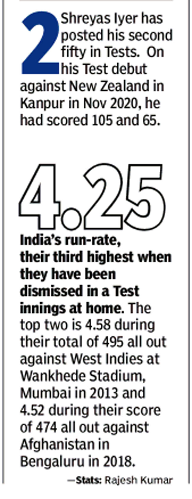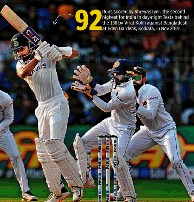 In what will go down as one of his best innings, Iyer rose to the occasion on a surface which was anything but easy to bat on. With the turn and bounce posing a challenge, Iyer took on the Lankan bowlers with reassured footwork. Although wickets kept tumbling at the other end, he soldiered on. His 132-minute stay at the crease was face-saving for the hosts and top-class entertainment for the spectators.