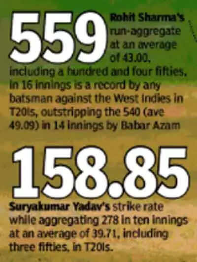 Rohit provided a fluent start getting 40 off just 19 balls. But India suffered a setback thereafter losing Ishan Kishan and Virat Kohli in consecutive overs with Fabian Allen being involved in both the dismissals. But Yadav did not allow West Indies to make a comeback as he began with consecutive boundaries off the first two balls that he faced. In spite of Rishabh Pant also failing to fire, Yadav and Iyer were involved in a 26-ball 48-run unbroken fifth-wicket stand that took India home.