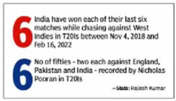 Wicketkeeper-batter Pooran stood tall for West Indies after skipper Sharma won the toss and put the rivals in to bat first. Living up to his big purse in the recent IPL mega auction, the left-hander hit a fluent 61 off 43 balls that helped them put up a fighting 157 for seven in 20 overs. Pooran did not miss out anything that was in his zone and found four fours and five sixes.