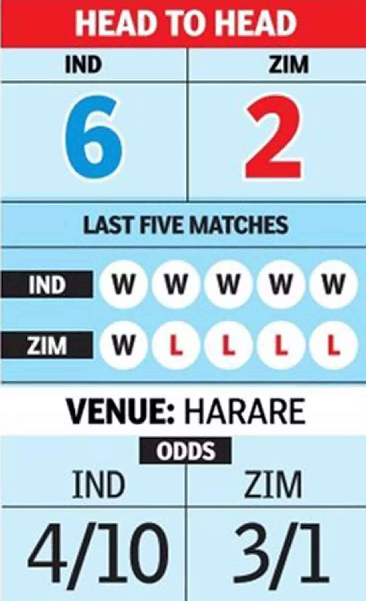 Zimbabwe isn't the strongest opponent by any means, but in the Twenty20 format, the difference between the two teams isn't as great as it is in the other two formats.