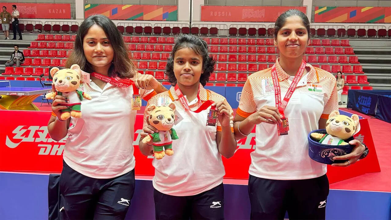 NEW DELHI: The Indian women's table tennis team, consisting of Poymantee Baisya, Moumita Dutta, and Yashini Sivasankar, secured the country's first medal at the current BRICS Games being held in Kazan, Russia. The trio earned a bronze medal after facing a 1-3 defeat against China in the semi-final match on Friday.
