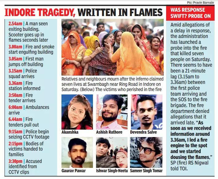Police say it was the rage of a spurned lover that sparked the inferno. "CCTV footage from nearby buildings show a man leaving the premises seconds before the fire started. He has been identified as Sanjay alias Shubham Dixit, who was a tenant in the building till six months ago and was in love with a girl who lives there. Her marriage was fixed recently, which angered Sanjay," Indore Police commissioner Harinarayanachari Mishra told reporters on Saturday evening.