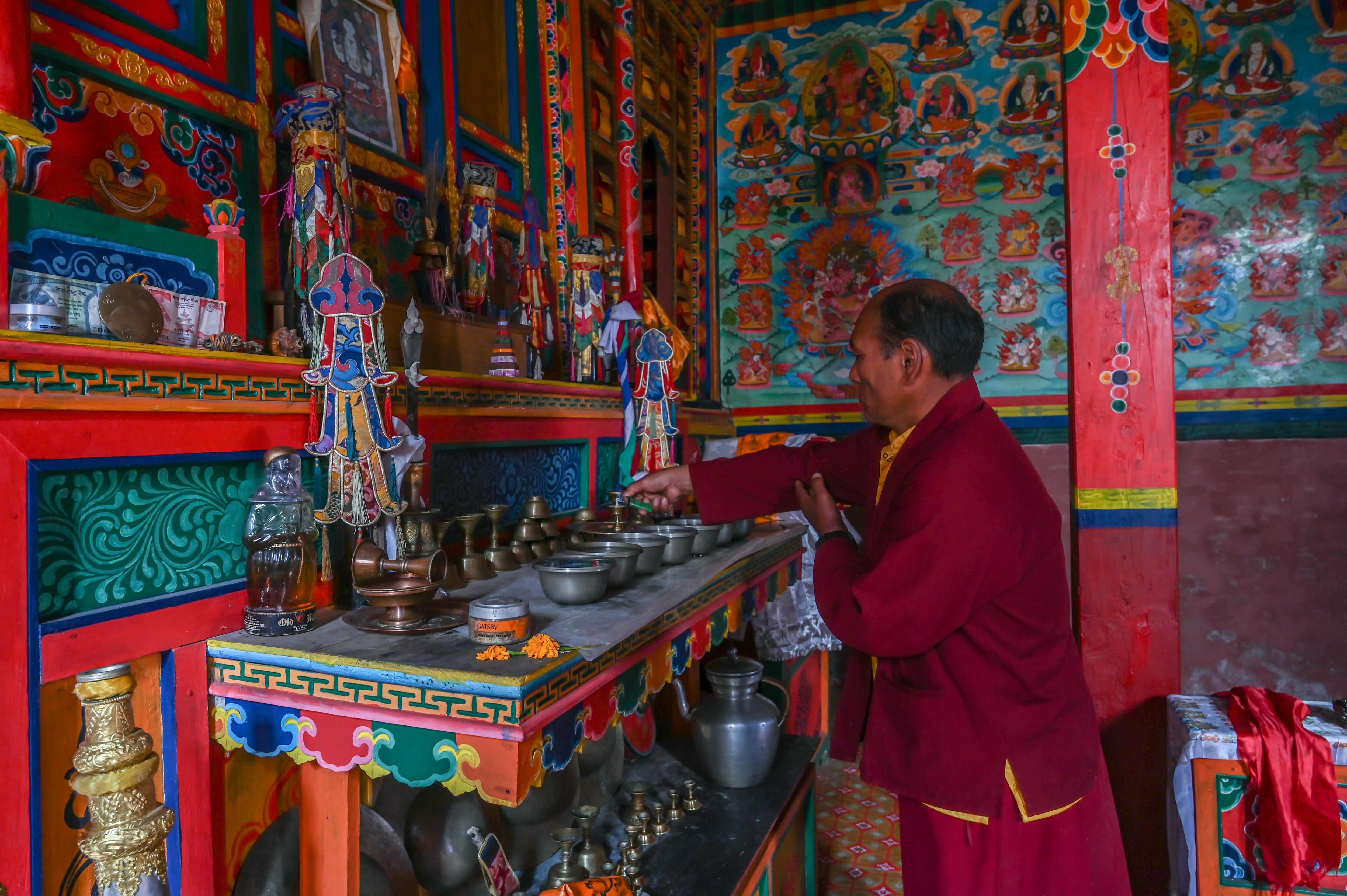 Every morning Sherpas make offerings of food, water and incense to a range of Buddhist deities, says Pemba Sang Sherpa, Chief Lama at Yonam Sang Chholing Monastery in Kurima.
