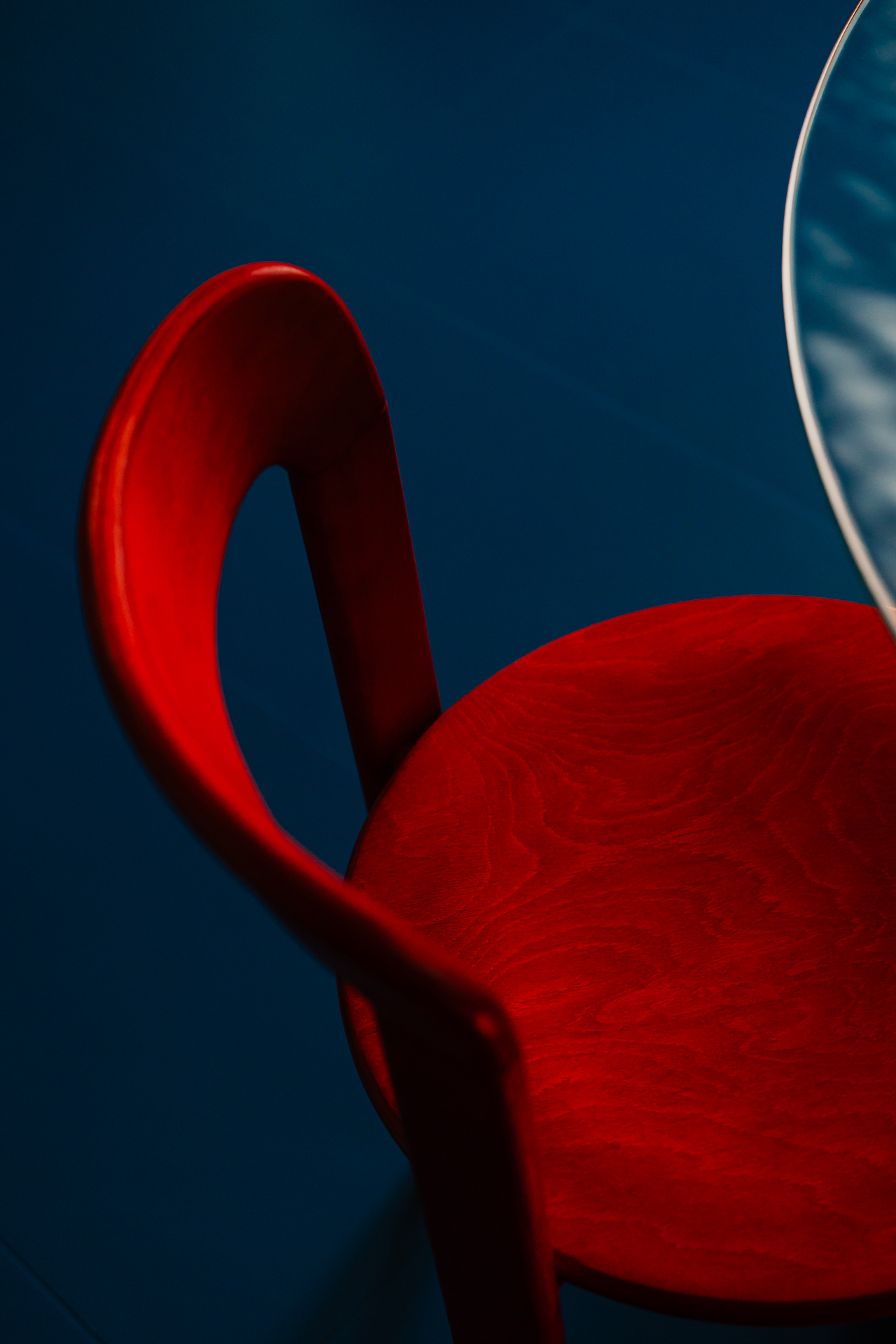 This sense of animation extends to the decor: vibrant tabletop sculptures from Totem Studio Warsaw feature playful silhouettes, and in the painting by Warsaw artist Irma Tylor titled Paris Is Burning, there is yet another exploration of the human body. "The rhythmic forms of the furniture and lighting enforce a natural, almost choreographic awareness of one's own body within the space," adds Gosia.
