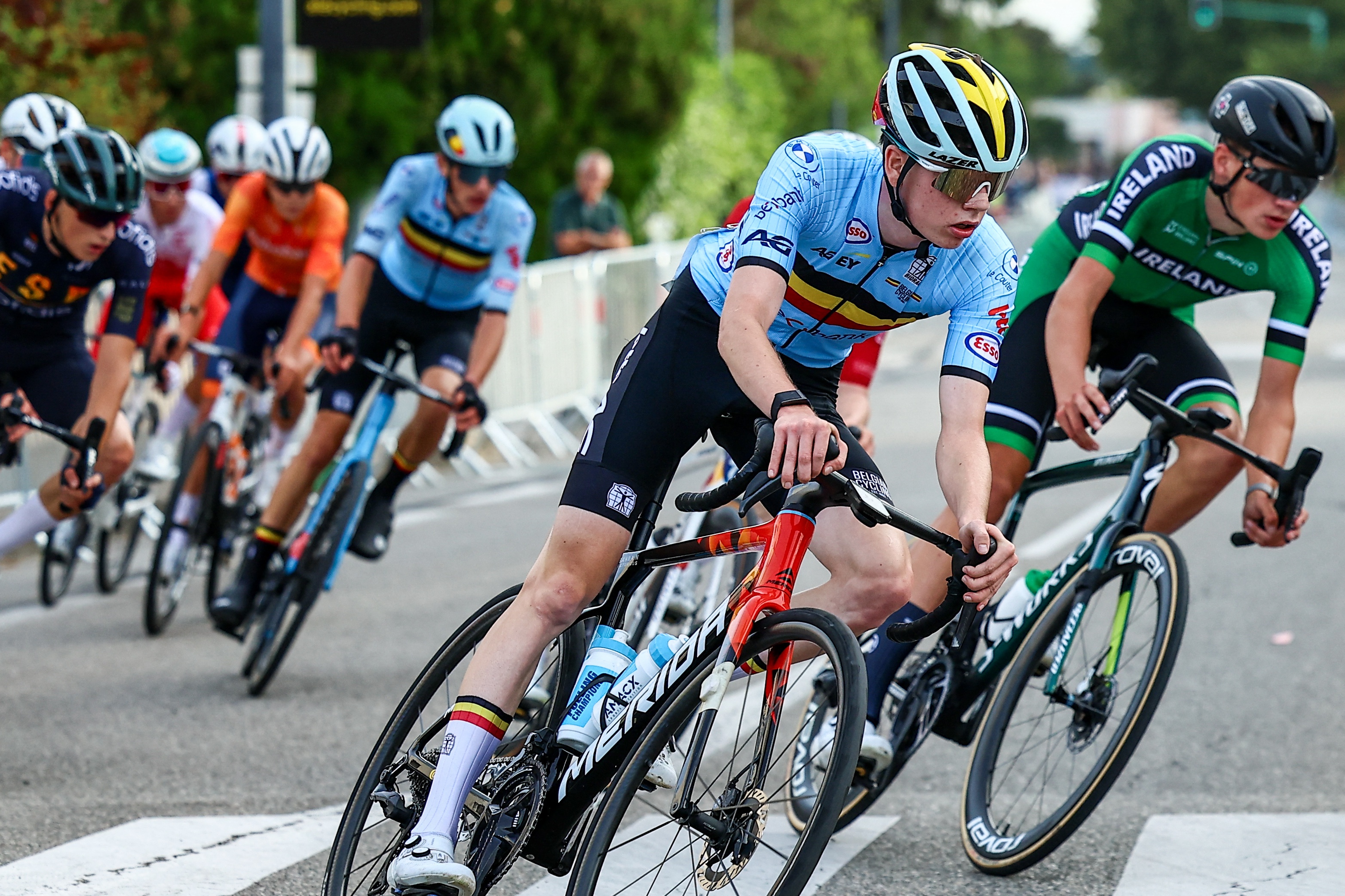 The start of the junior E3 Classic is a strange place. Just a few hundred metres up the road, WorldTour pros are getting ready in warm buses, hordes of fans already surrounding them. Round the corner, on a quiet, residential street, there are 17 and 18-year-olds getting changed in vans.