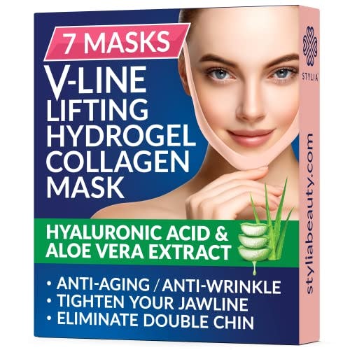 7 Piece V Line Shaping Face Masks – Double Chin Reducer - Lifting Hydrogel Collagen Mask with Aloe Vera – Anti-Aging and Anti-Wrinkle Band - Contouring, Slimming and Firming Face Lift Sheet