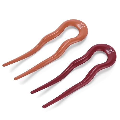 HAWWWY French Hair Pins Orange & Maroon - Pack of 2 - U Shape Hair Forks - 5.1''L Prong Bun Hair Sticks - Chignon Pins Hairstyle Accessories - Bun Clip for Women HairPins_2Pack_Orange & Maroon