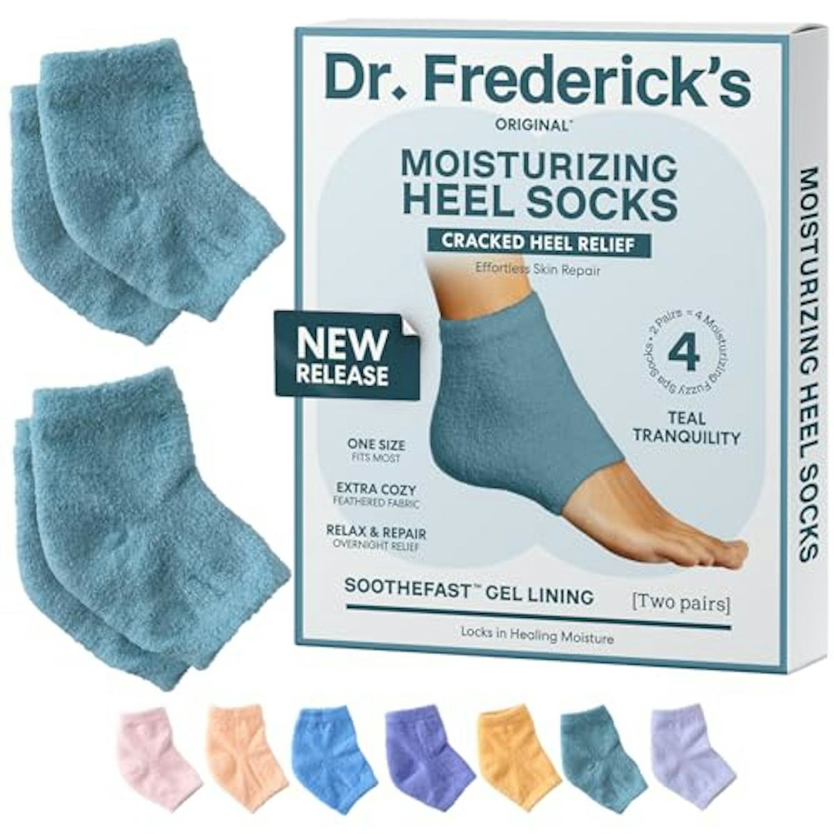 Dr. Frederick's Original Moisturizing Fuzzy Heel Socks - 2 Pairs - Cozy Gel-Lined Sleep Socks for Women & Men - Soothes Dry, Cracked Feet - Heel Repair - Teal Tranquility