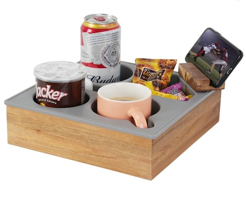 A Couch Cup Holder Tray That Turns Any Sofa Into A Snack Throne