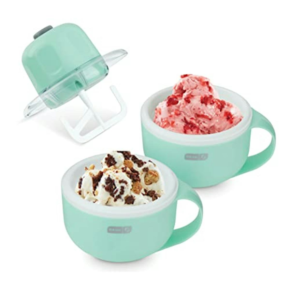 DASH My Mug Ice Cream Maker Machine (Aqua): Multi-Purpose Soft Serve Ice Cream Machine with (2) Bowls for Homemade Gelato, Sorbet, Frozen Yogurt, Built-In Ingredient Chute, Easy to Clean and Store