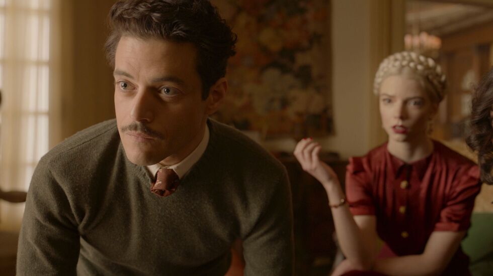 With the cinematography and production design accurately capturing the time period but also conveying a drab and bland look, “Amsterdam” grows ever more convoluted, as a number of quirky-for-the-sake-of-being-quirky characters are introduced, disappear for long stretches of time and then resurface. Mike Myers and Michael Shannon play intelligence officers who are also controversial bird enthusiasts, while Andrea Riseborough is Burt’s estranged wife, who has a kinky attraction to Burt’s terribly scarred torso. Then there’s Zoe Saldaña’s Irma St. Clair, a nurse who is in love with Burt, and let’s not forget Rami Malek as Tom Voze, a wealthy, dead-eyed weirdo with some alarming political beliefs, and Anya Taylor-Joy as Tom’s shrill and caustic wife, Libby.