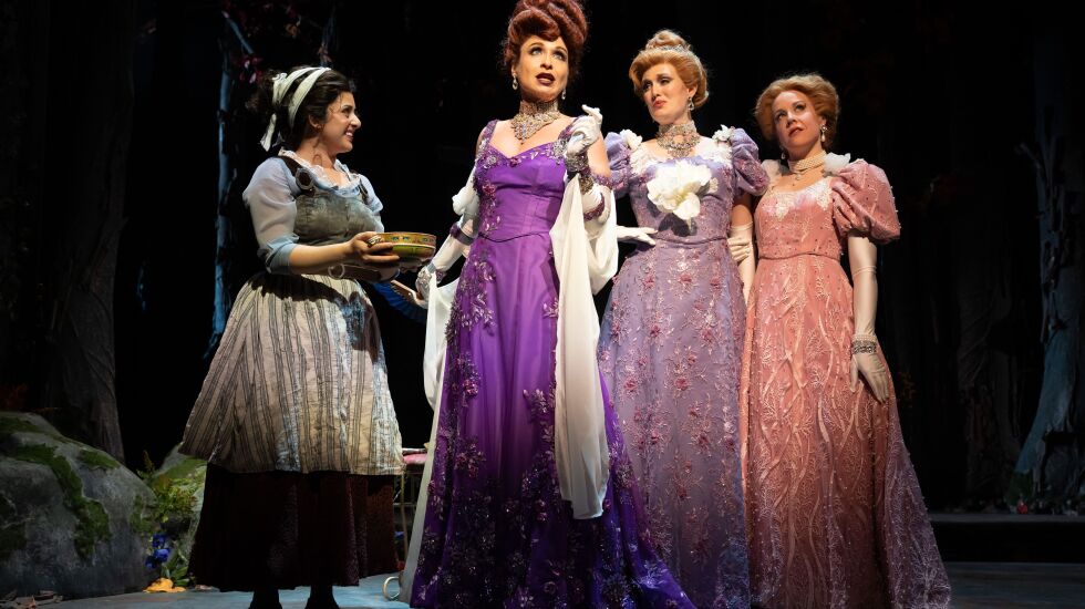 In the first act of “Into the Woods,” a familiar clutch of fairy tale characters go into the woods on journeys. Princess, golden eggs, children — all wishes granted. The second act shows what happens next. The eggs were stolen. The baby won’t stop crying. The princess? Problematic. Looming over all is the Giant, (Dana Tretta), egregiously, irreparably harmed in the first act and demanding blood sacrifice in the second.