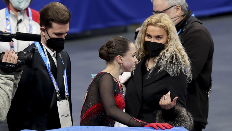 See on the live broadcast, Tutberidze walked up to Valieva as she stepped off the ice after her performance and asked her in Russian: “Why did you let it go? Why did you stop fighting? Explain it to me, why? You let it go after that axel.”