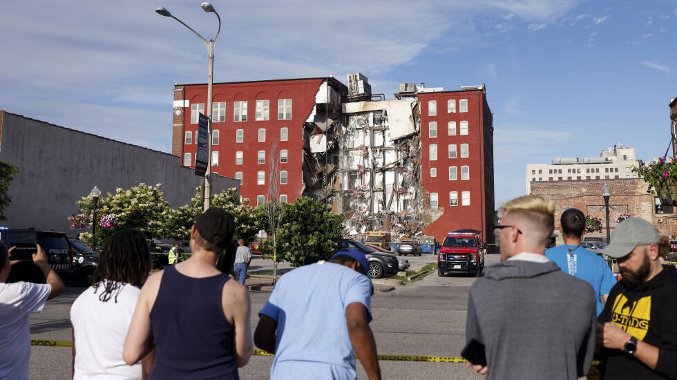 DES MOINES, Iowa — Five residents of a six-story apartment building that partially collapsed in eastern Iowa remained unaccounted for Tuesday, and authorities feared at least two of them might be stuck inside rubble that was too dangerous to search.