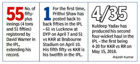 The way DC openers set the stage on fire right from the word go that Shreyas was forced to use seven bowlers in the first eight overs, even bringing in his trusted spinning duo of Narine and Varun Chakravarthy early on as DC raced to 50 runs in just four overs.